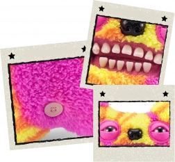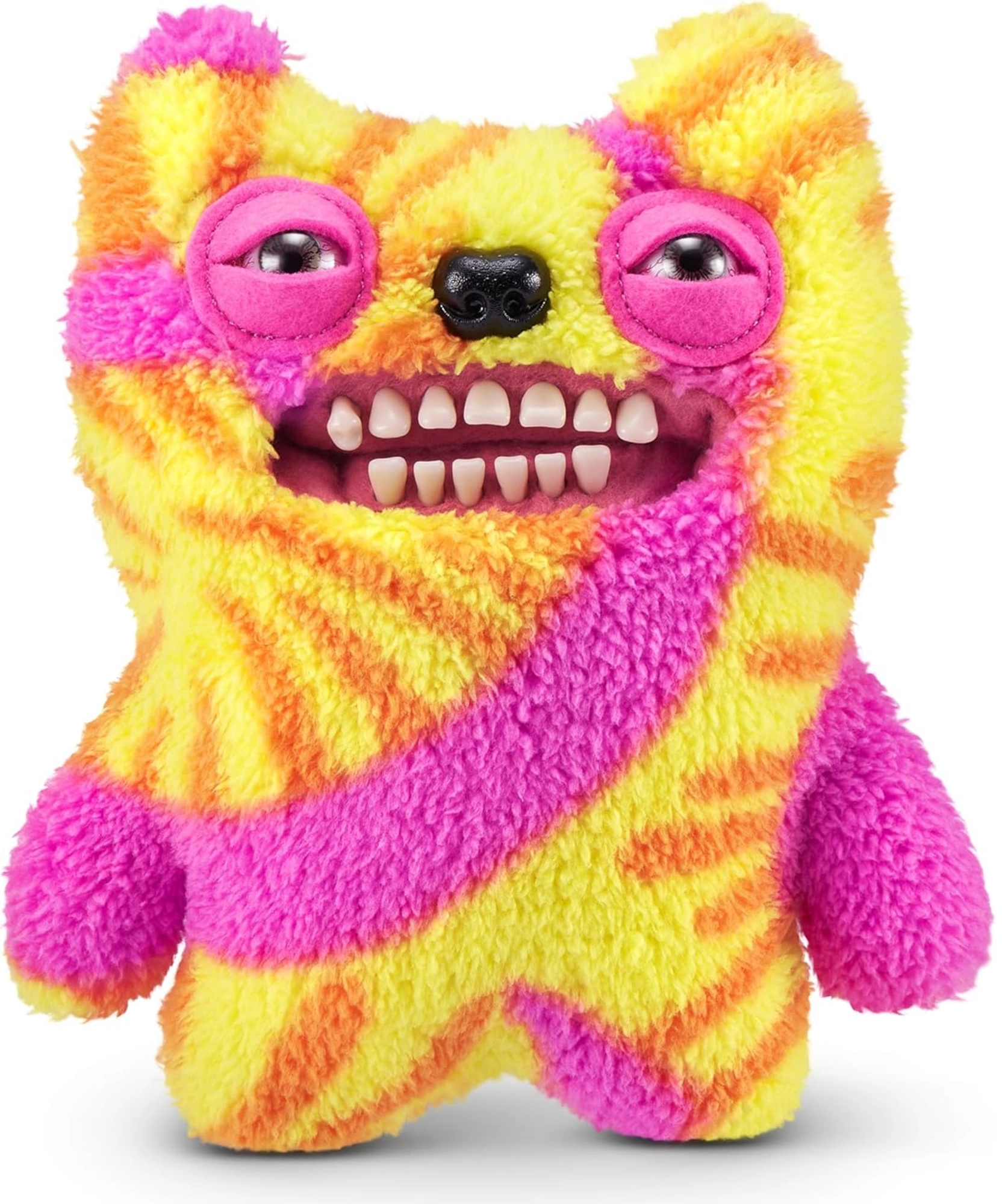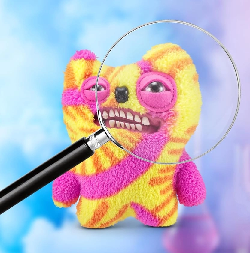Il mostriciattolo di peluche FUGGLER Old Tooth della linea Laboratory Misfits Monster colpisce a prima vista con il motivo tie-dye vorticoso in tonalità di giallo, rosa e arancione. I denti in plastica a contrasto, il naso canino nero e gli occhi sporgenti gli conferiscono un’espressione inconfondibile, leggermente grottesca, che cattura subito l’attenzione.
