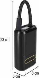 Compatta pompa wireless 3 in 1 che unisce mini compressore, power bank e torcia LED con SOS. Grazie al display digitale, agli ugelli intercambiabili e a una pressione massima di 150 PSI (10 bar), gonfi facilmente pneumatici di auto e bici, palloni e gonfiabili – ovunque e in qualsiasi momento.