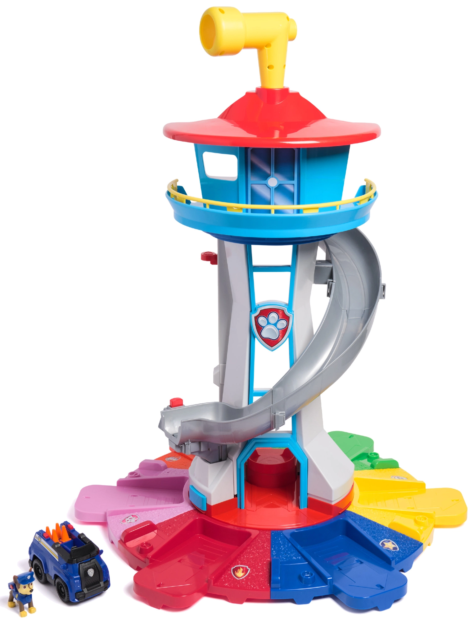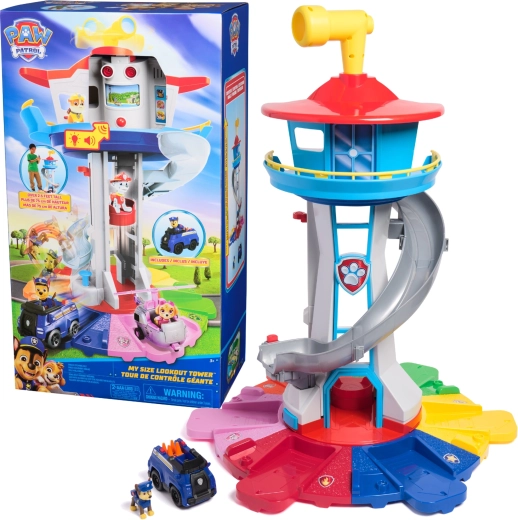 Vivi l’azione come nel film con la torre My Size Lookout Tower di PAW PATROL alta oltre 81 cm. I bambini saranno incantati da effetti luminosi e sonori, ascensore, periscopio girevole e lunga scivolo con lanciatore. Inclusi la figura di Chase e il suo veicolo della polizia – pronti all’azione subito dopo l’apertura.