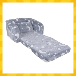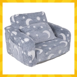 Morbido comfort e divertimento in uno – la poltroncina pieghevole per bambini Kruzzel si trasforma facilmente in una chaise longue per leggere, riposare e ascoltare favole. Leggerissima, sicura e facile da trasportare, con pratica tasca laterale e morbido rivestimento in peluche. Le lune e stelline fluorescenti brillano delicatamente al buio creando un’atmosfera rilassante per un sonno sereno.
