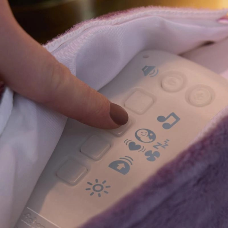 Il pancino che emana una luce soffusa e la scelta di melodie, suoni della natura e rumore bianco aiutano il bambino a calmarsi e ad addormentarsi più facilmente.