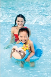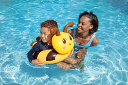 La ciambella circolare garantisce un galleggiamento stabile e i bambini possono aggrapparsi facilmente alla testolina dell'animaletto. Ottima per abituarsi gradualmente all'acqua.