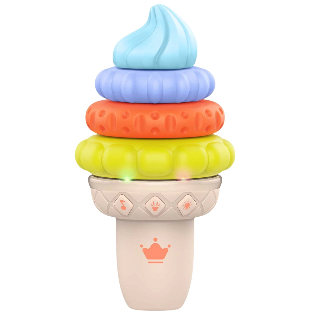Questo gelato musicale educativo è un’ottima scelta per le prime scoperte del mondo attraverso il gioco. I pezzi colorati, morbidi ed elastici con diverse texture invitano ad afferrare, schiacciare e impilare in qualsiasi ordine, favorendo il pensiero logico e lo sviluppo della motricità fine. I LED integrati e le piacevoli melodie catturano l’attenzione del bambino e stimolano i sensi.