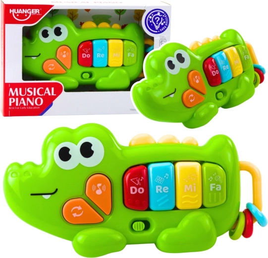 Il colorato pianino interattivo a forma di coccodrillo farà felice ogni piccolo esploratore. Offre quattro tasti Do, Re, Mi, Fa, allegre melodie e suoni e anelli manipolativi aggiuntivi per lo sviluppo della motricità fine. Grazie alle dimensioni compatte è ideale a casa e in viaggio, e il design sicuro con bordi arrotondati è adatto alle mani dei bambini.