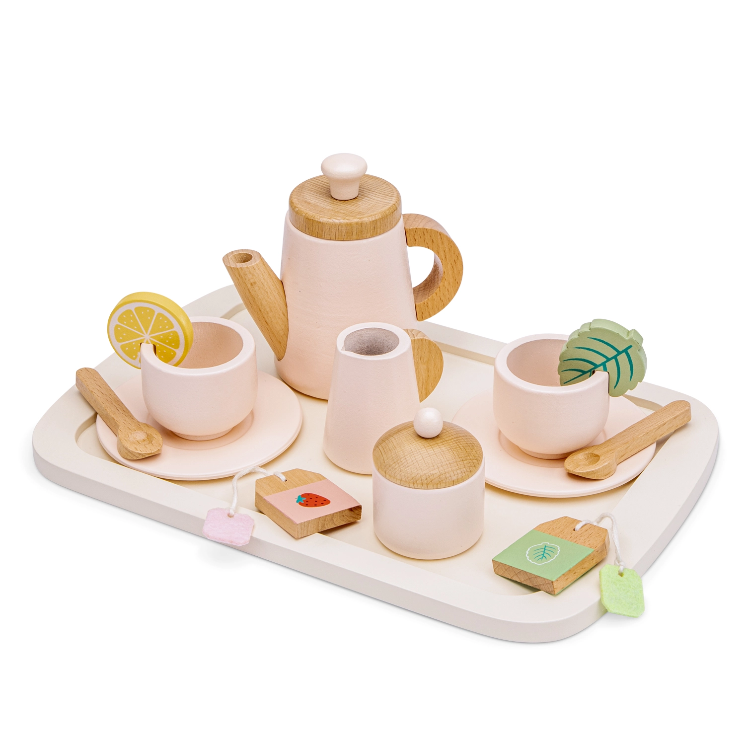 Questo set da tè in legno è ideale per i piccoli che amano il gioco di ruolo. I bambini possono versare il tè, aggiungere il latte, mescolare lo zucchero e servire a piacere, il tutto in sicurezza e con accessori adatti alle manine. I colori delicati e il legno naturale conferiscono al set un aspetto senza tempo e un’alta resistenza.