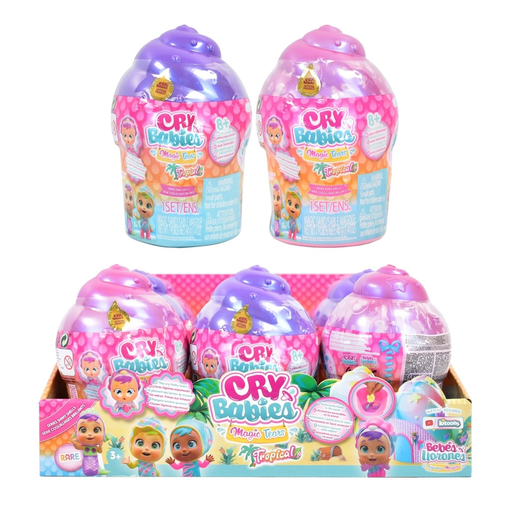 La bambola Cry Babies Magic Tears Shiny Shell regala ai bambini la gioia dell’unboxing e un mondo fantasioso ricco di accessori. Ogni bambola è racchiusa in una capsula a conchiglia madreperlata che, una volta aperta, svela oltre 9 sorprese nascoste nella sabbia. Dopo aver riempito il biberon con acqua e premuto delicatamente il pancino, la bambola versa lacrime frizzanti – un dettaglio scenografico che favorisce il gioco emotivo e di cura.