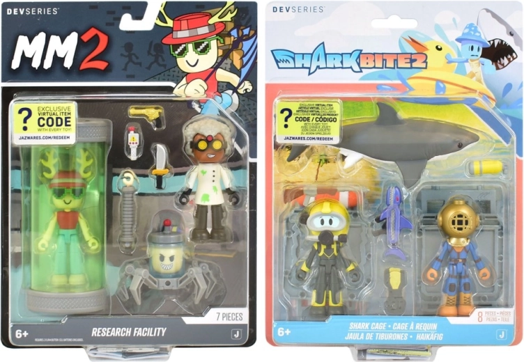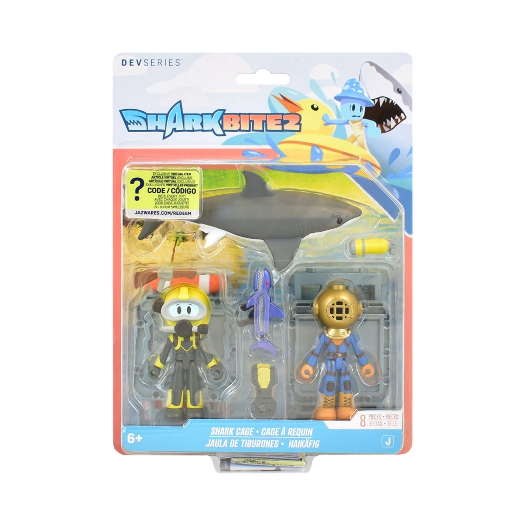 Entra nel mondo di ROBLOX con il set tematico ispirato all'edizione Shark Bite 2. Due action figure di sub (Diver e Deep Sea Diver) sono accompagnate da una gabbia anti-squalo da costruire e dalla figura del Grande squalo bianco, che aggiunge tensione a ogni scena. Grazie al codice esclusivo potrai inoltre sbloccare contenuti virtuali ed espandere le tue possibilità di gioco.