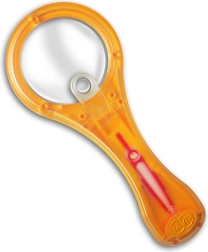 Pratica lente d’ingrandimento in plastica ABS ecologica con una seconda lente integrata, ideale per piccoli esploratori dai 6 anni. Grazie all’impugnatura che si apre come una bussola, la lente può essere appoggiata comodamente sul tavolo e usata a mani libere. All’interno dell’impugnatura si trova inoltre una pinzetta rimovibile per manipolare facilmente piccoli oggetti. Lente grande 60 mm, lente piccola 13 mm, ingrandimento 3× e 7×, materiale ecologico, mix di colori.
