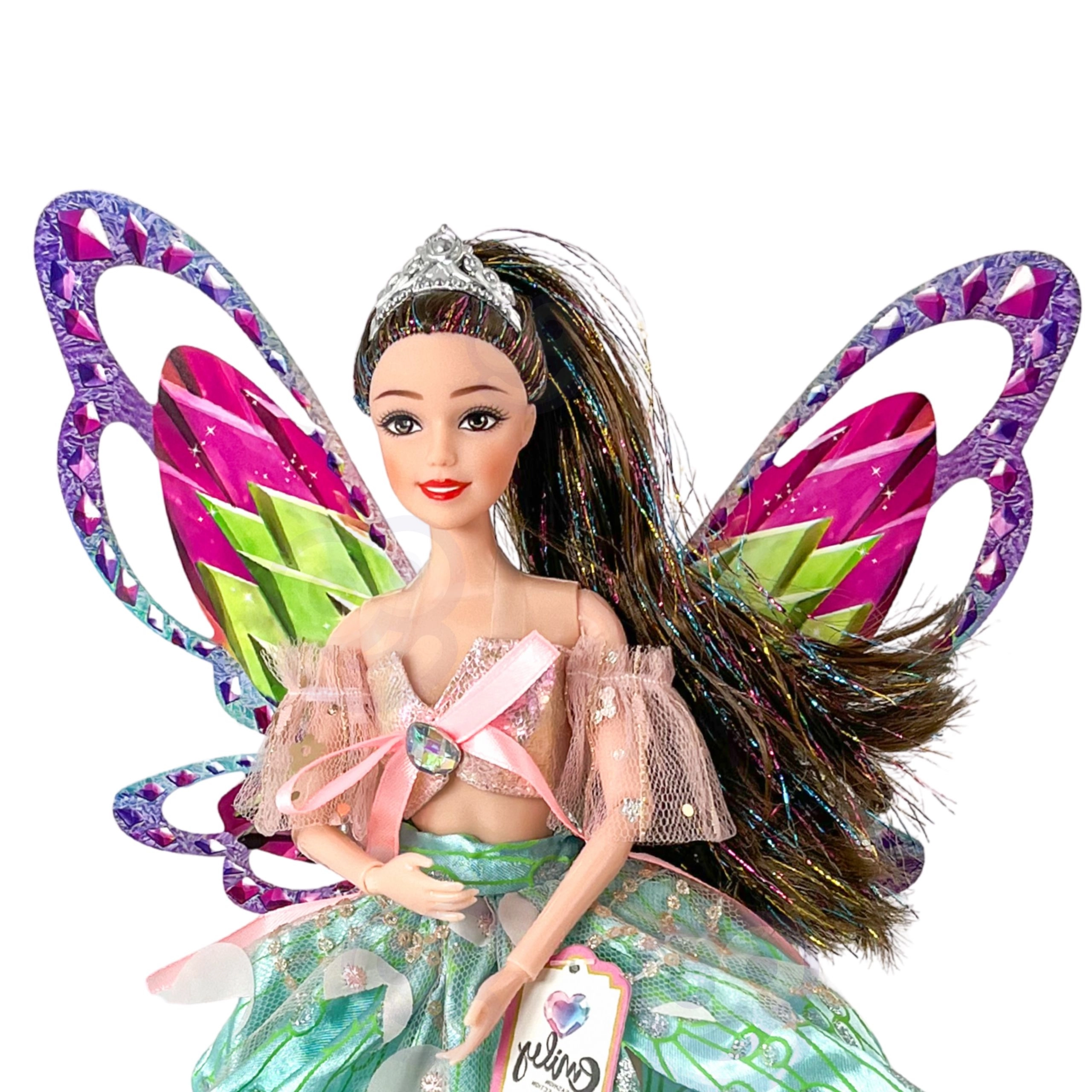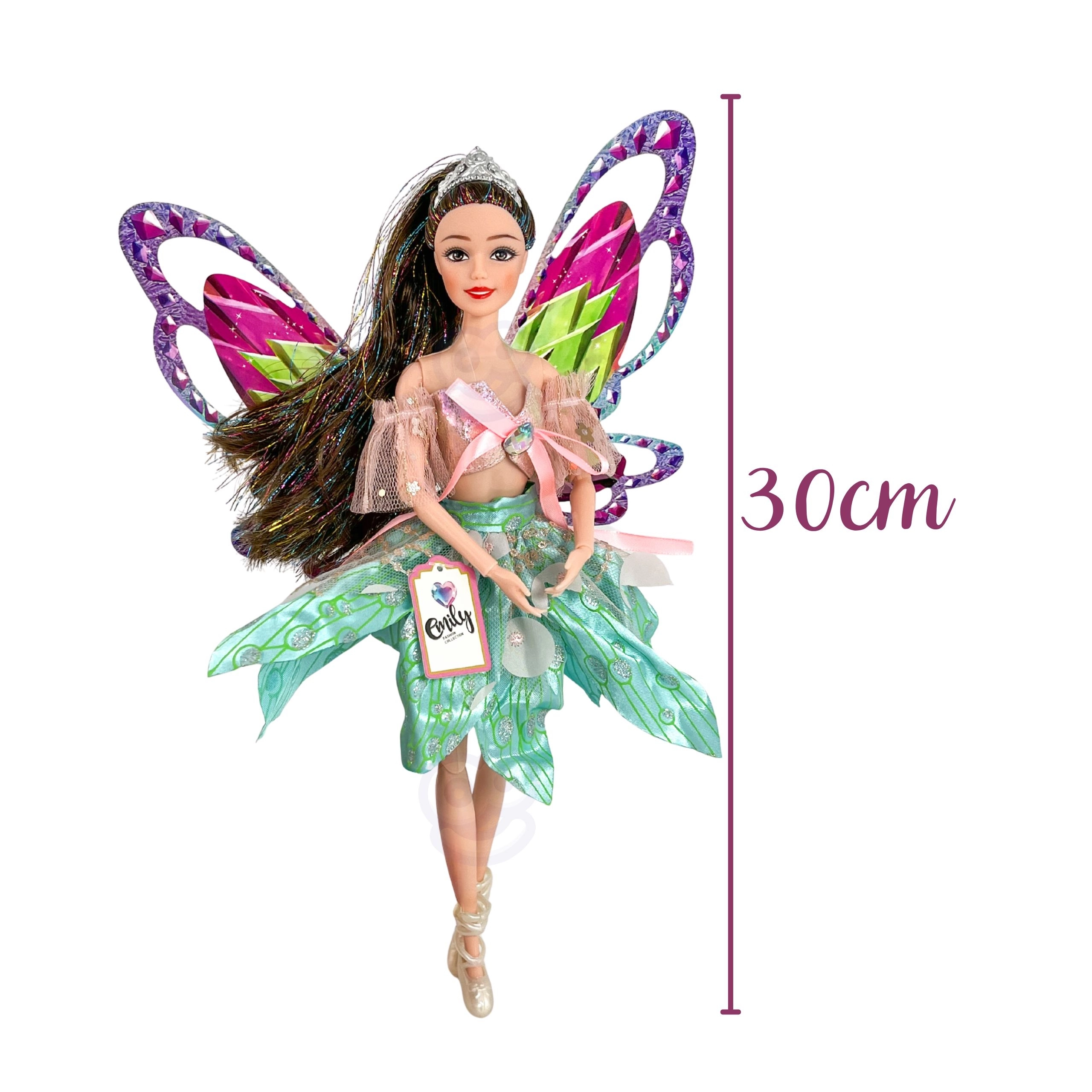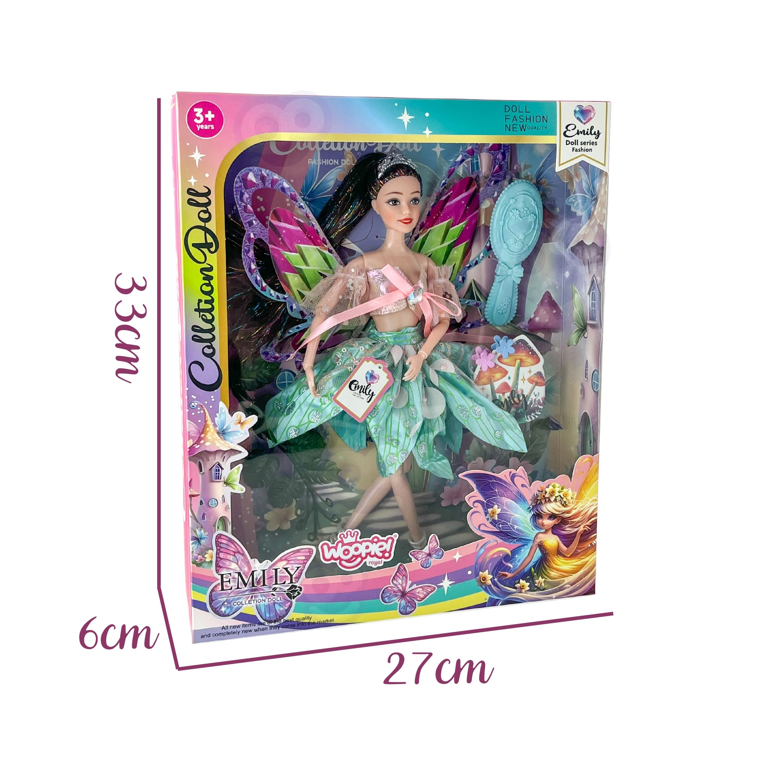 La bambola Emily è fatta per i piccoli sognatori che amano le fiabe, la moda e le avventure magiche. Le sue grandi ali colorate e i dettagli scintillanti creano l'effetto di una vera fata, mentre l'elegante abito con maniche in tulle ha un aspetto festoso e fotogenico.