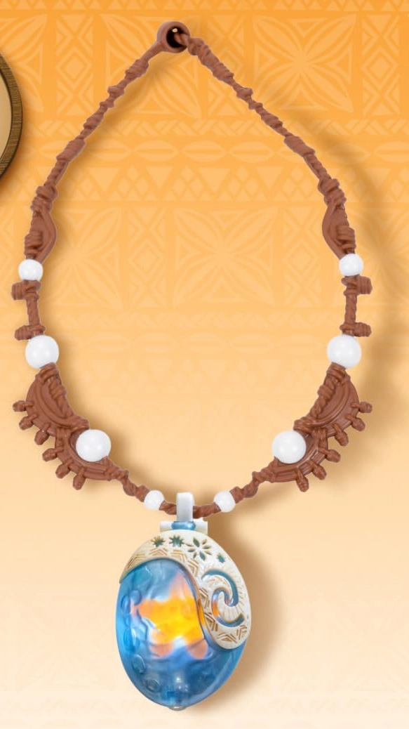 Ispirata al film Disney VAJANA 2, questa collana porta ai bambini una dose di avventura e il piacere del gioco quotidiano. Il ciondolo a forma di conchiglia blu decorata, una volta aperto, si illumina e rivela la magica Stella del Mare, che dona a ogni travestimento un effetto sorprendente.