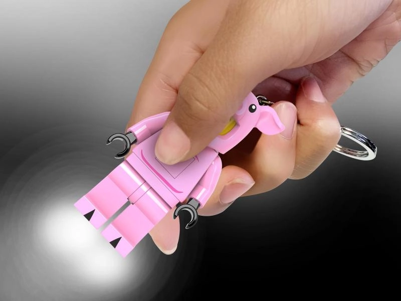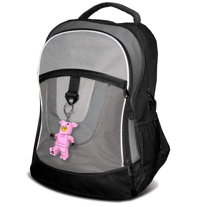 Il grazioso portachiavi LEGO in costume da maialino ravviva le tue chiavi e lo zaino e funge anche da rapido aiuto al buio. Con una semplice pressione del pulsante si attiva la luminosa luce LED bianca, che facilita la ricerca della serratura o di piccoli oggetti nella borsa.