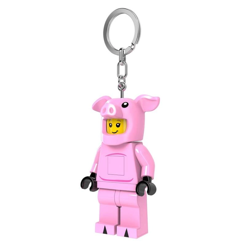 La minifigure LEGO finemente dettagliata in costume rosa da maialino dona alle tue chiavi uno stile unico e vivace.