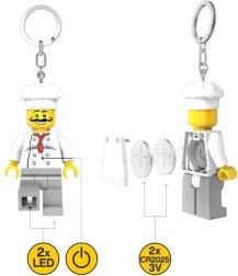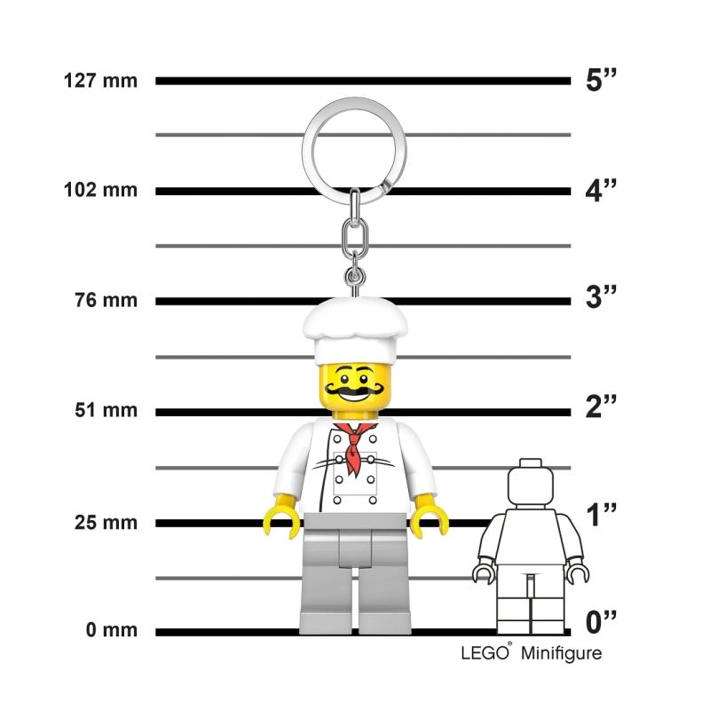 La minifigure preferita in versione chef trasforma le tue chiavi in un accessorio di stile che è anche utile al buio. Basta premere il pulsante e la luminosissima luce LED bianca illuminerà la serratura o l’interno dello zaino.