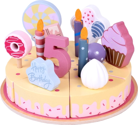 Una deliziosa torta di compleanno in legno da tagliare trasforma ogni gioco in una festa. I bambini si divertiranno con la decorazione creativa, il taglio a fette e il servizio. Legno finemente levigato, colori atossici e accessori vivaci (candeline, numeri 1–5, dolcetti, scritta Happy Birthday) sviluppano motricità fine, immaginazione e gioco di ruolo.