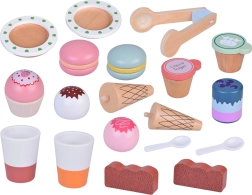 Coni gelato, macaron, cupcake, piattini, cucchiaini e accessori per le bevande. I bambini possono combinare i gusti, decorare e servire secondo la fantasia.