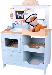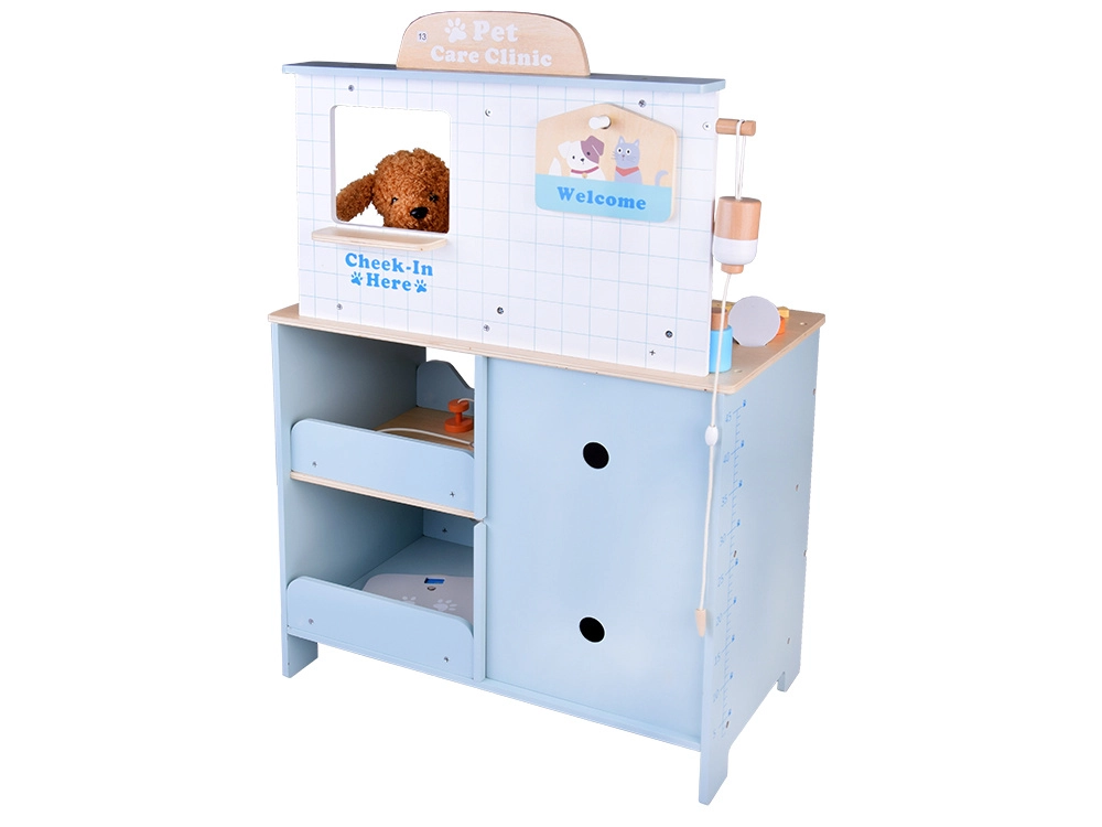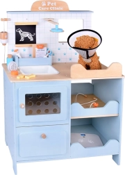 La clinica veterinaria in legno per bambini offre tutto ciò di cui i piccoli amanti degli animali hanno bisogno per curare i loro pazienti di peluche. La robusta struttura in legno con angoli arrotondati e vernici atossiche garantisce un gioco sicuro, mentre gli elementi ben studiati – lavello, mensole, finestrina per l’accettazione, lavagna e vani portaoggetti – rendono il gioco autentico e ordinato.