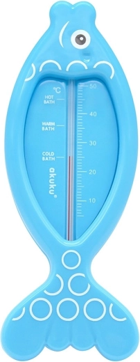 Pratico termometro galleggiante per la vaschetta del marchio Akuku a forma di pesciolino misura con precisione la temperatura dell’acqua per un bagnetto sicuro del bambino. Non contiene mercurio e grazie alla scala ben leggibile è facile individuare la temperatura ideale. La struttura galleggiante garantisce un uso comodo e il materiale sicuro è adatto ai bambini.
