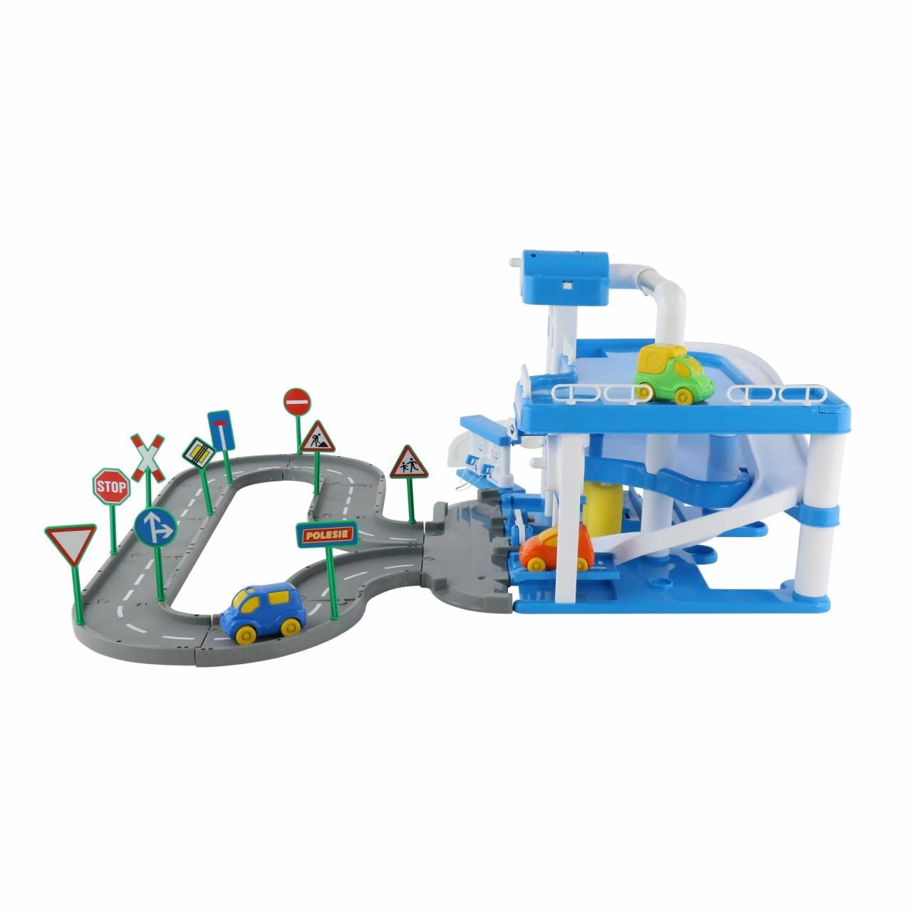Il set è pronto per giocare subito: nella confezione troverai 3 automobiline lunghe circa 9 cm, adesivi per un look realistico e segnali per una circolazione sicura all’interno del garage. Il prodotto fa parte della linea Wader Quality Toys, nota per qualità e resistenza.