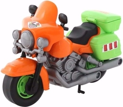Questa moto di plastica per bambini offre un grande divertimento per i piccoli appassionati di veicoli. Grazie alla costruzione robusta e alle ruote libere è adatta al gioco in casa e all’aperto. Dettagli realistici come luci, scarichi e box laterali incoraggiano il gioco creativo e immaginativo.