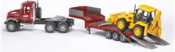 Bruder camion Mack con semirimorchio e terna JCB 4CX 1:16