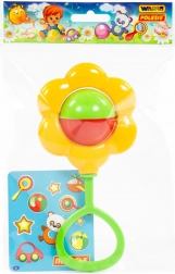 La pallina rotante al centro del fiore crea un suono gradevole e un movimento colorato che attira e stimola i sensi del bambino.