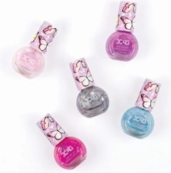 Il set di smalti per unghie Butterfly è perfetto per le piccole appassionate di bellezza che amano decorarsi. Questa affascinante collezione include cinque smalti da 5 ml ciascuno, di cui tre arricchiti con scintillanti glitter a forma di farfalla.