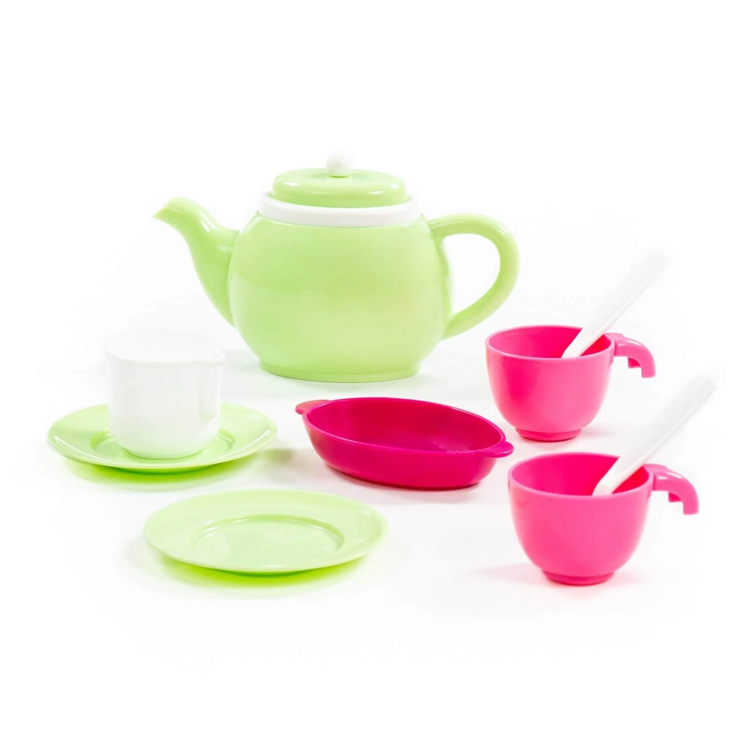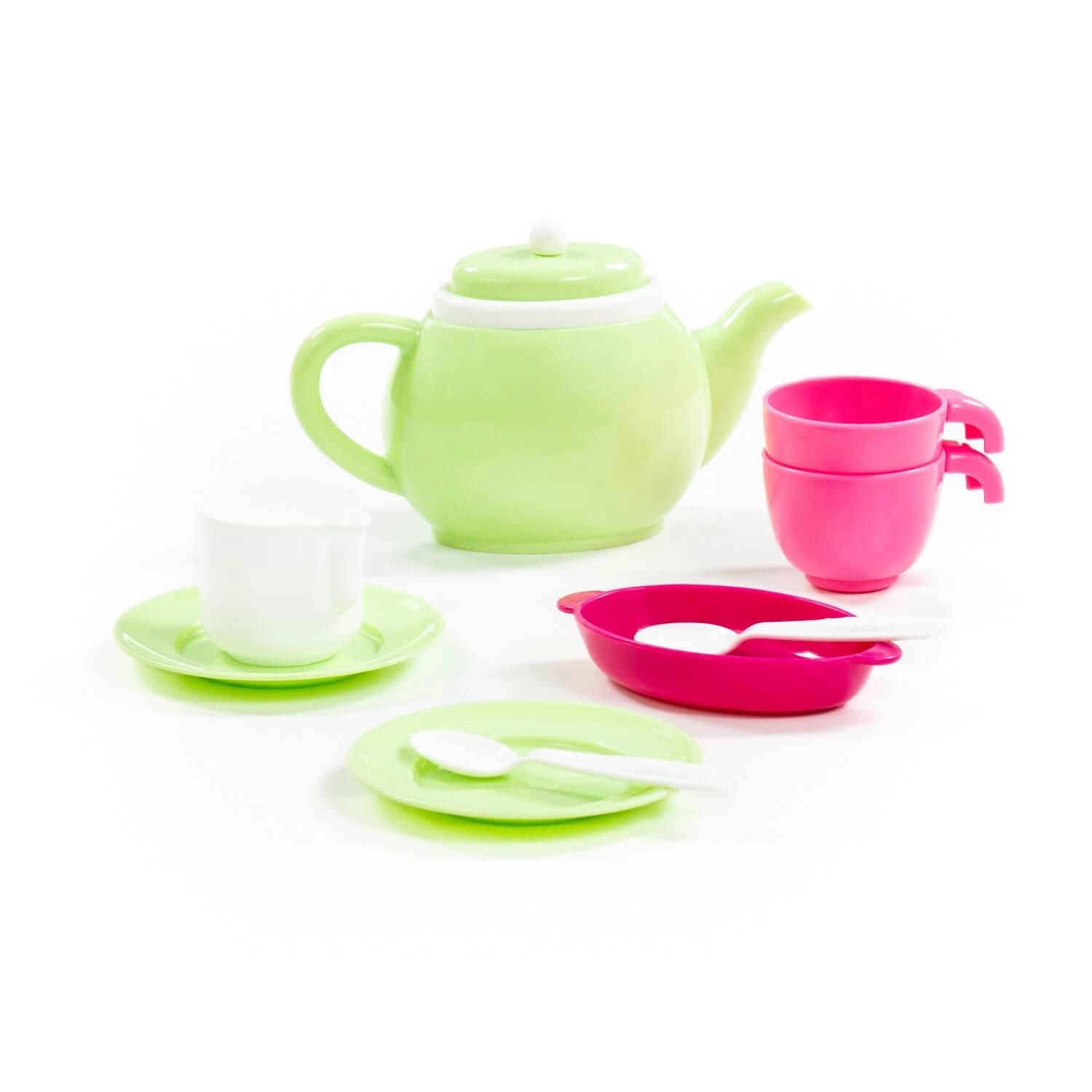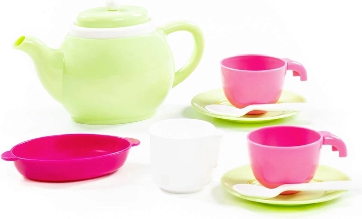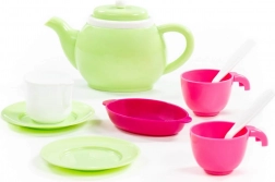 Set completo con teiera, tazzine, piattini e cucchiaini che permette ai bambini di imitare gli adulti e organizzare eleganti tea party.