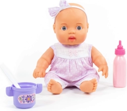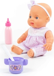 La dolce bambola Nice farà felici tutti i bambini con la sua dimensione di 24 cm e un pratico set di accessori. La confezione include la bambola e un set per l’alimentazione in 3 pezzi – biberon, ciotoline/anelli e cucchiaino. Il giocattolo è realizzato con materiali di qualità e ha occhi fissi che non si chiudono.