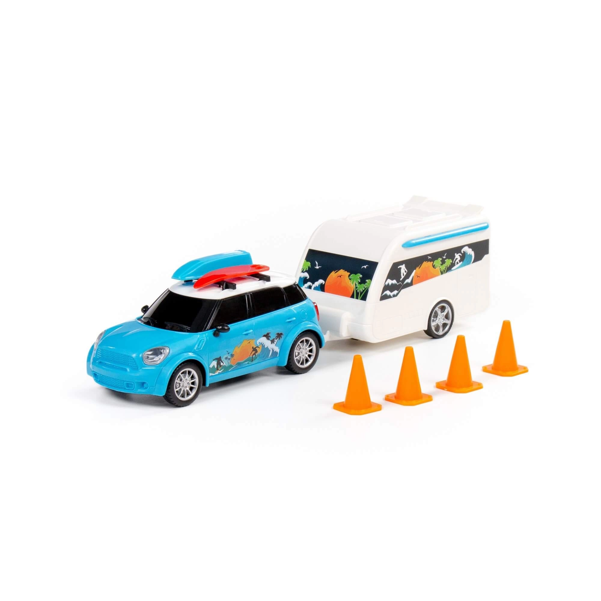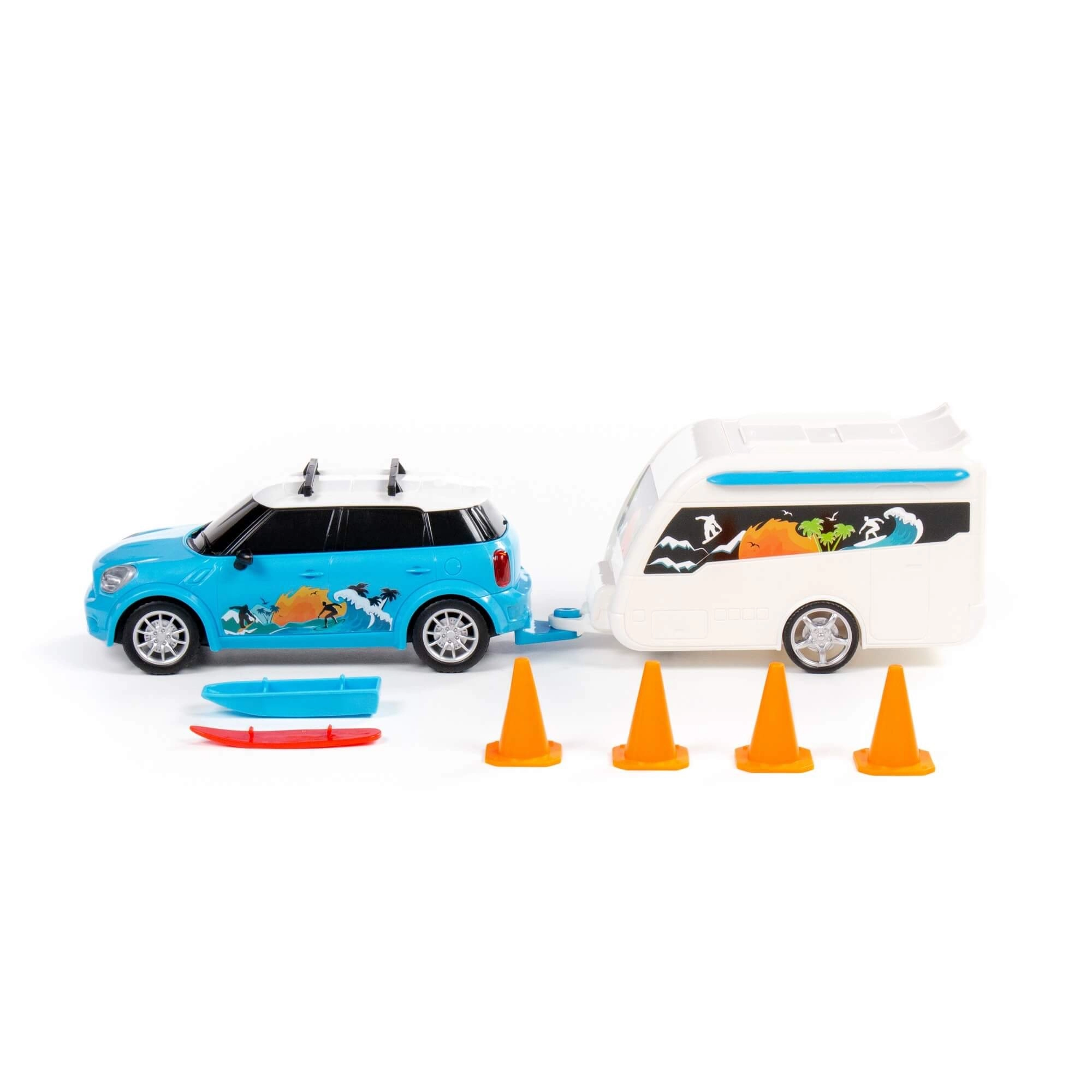 L’auto da viaggio giocattolo Cruise Car con caravan offre ai bambini un’esperienza di viaggio autentica. La colorazione vivace, l’imitazione dei fari e i portapacchi con surf stimolano la fantasia e favoriscono il gioco autonomo. Il rimorchio si aggancia e si sgancia facilmente, così i bambini imparano a pianificare il “carico” e lo “scarico”.