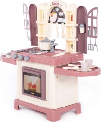 La cucina giocattolo Natali rosa è un set di gioco che riproduce fedelmente una vera cucina. I bambini potranno divertirsi a cucinare sul fornello con bruciatori, cuocere nel forno e lavare i piatti nel lavello. Gli sportelli apribili con finestrelle e le pratiche mensole donano al gioco un tocco realistico e permettono di riporre ordinatamente gli utensili.
