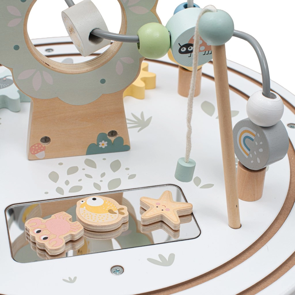 Scopri il tavolino multifunzionale in legno Montessori del marchio BABY MIX, che combina lavorazione di qualità, design moderno ed elementi educativi per sviluppare la motricità e il pensiero logico dei bambini. Grazie al legno resistente, alle forme sicure e ad attività come il labirinto di perline, gli ingranaggi o la pesciolina magnetica, offre un divertimento sensato ai bambini dai 18 mesi in su.