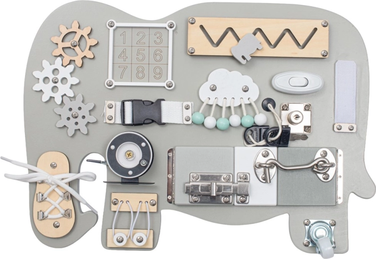 Questa board educativa Montessori offre ai bambini stimoli reali della vita quotidiana e li motiva alla scoperta autonoma. Il raffinato design a elefante si integra perfettamente in ogni ambiente e, grazie al legno robusto, resiste anche a un uso intensivo.