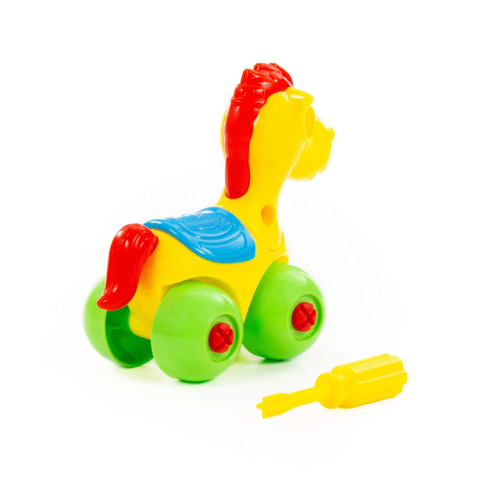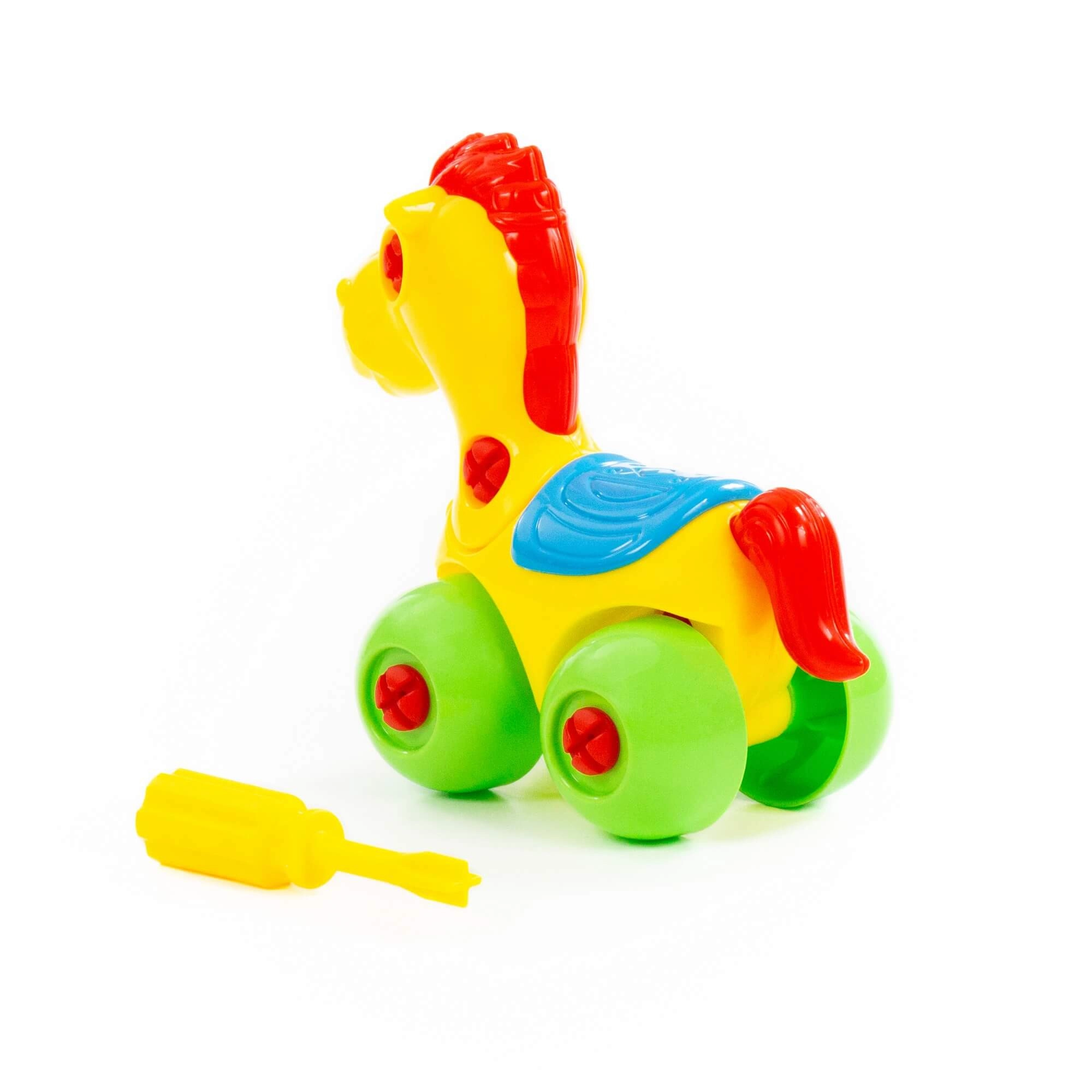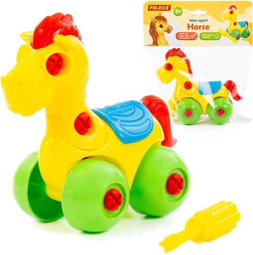 Questo colorato cavallino avvitabile su ruote è una scelta perfetta per i bambini curiosi di scoprire come funzionano le cose. Grazie al cacciavite incluso, i singoli pezzi possono essere facilmente smontati e rimontati, sviluppando pazienza e destrezza.