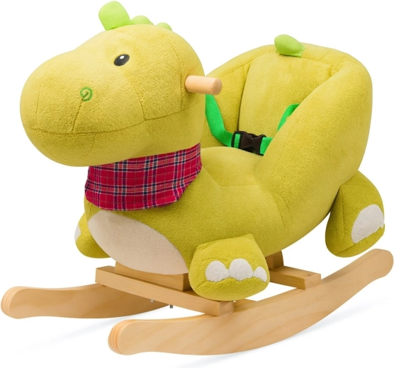 Questo dinosauro a dondolo in peluche trasforma ogni momento di gioco in un'avventura sicura. Grazie al sedile confortevole con schienale e cintura di sicurezza il bambino è seduto stabilmente, mentre le slitte in legno garantiscono un movimento oscillatorio fluido e tranquillo. La melodia si attiva facilmente premendo un pulsante, favorendo lo sviluppo dell'udito e della percezione.