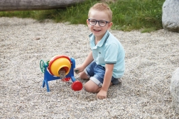 Questa colorata betoniera per bambini riproduce fedelmente una vera macchina da cantiere. Con la manovella laterale è facile ruotare il tamburo e mescolare sabbia o piccoli sassolini. Grazie al telaio stabile e ai bordi arrotondati, il gioco è sicuro e divertente.
