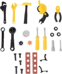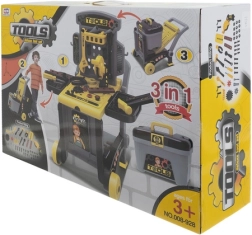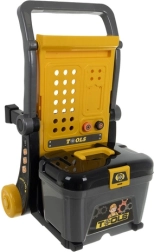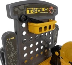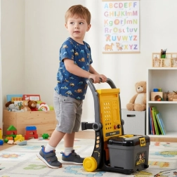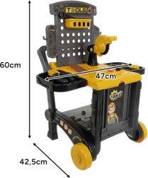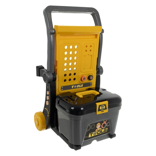 Grazie all’organizer e alla valigetta ogni componente ha il suo posto, la tavola perforata facilita l’aggancio degli attrezzi e le robuste ruote garantiscono spostamenti agevoli nella stanza. Il set è ideale come regalo per bambini dai 3 anni – sicuro, divertente e sempre stimolante.