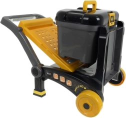 Un solo set, tre modalità di gioco. I bambini possono lavorare al solido tavolo, trasportare gli attrezzi con il carrello oppure giocare con la carriola – sempre in modo creativo e in movimento.