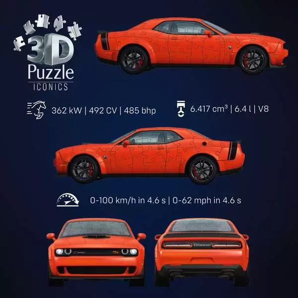 Scopri divertimento e relax assemblando il realistico modello 3D dell’auto DODGE CHALLENGER R/T SCAT PACK WIDEBODY del marchio RAVENSBURGER. Grazie ai pezzi numerati e alla struttura solida senza colla, potrai goderti un montaggio semplice con un risultato finale che diventa una elegante decorazione per casa o ufficio – ideale per appassionati di auto e principianti.
