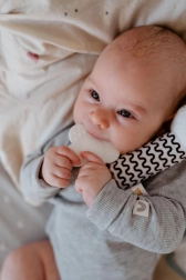 Il massaggiagengive inferiore a forma di fiore è delicato sulle gengive e aiuta durante la dentizione dei primi dentini. Il motivo a contrasto bianco e nero sostiene lo sviluppo visivo dei più piccoli. Il peluche è soffice, sicuro, piacevole al tatto e adatto fin dalla nascita. Il prodotto è certificato in Repubblica Ceca, rispetta elevati standard di sicurezza ed è un’ottima idea regalo per bebè 0m+.