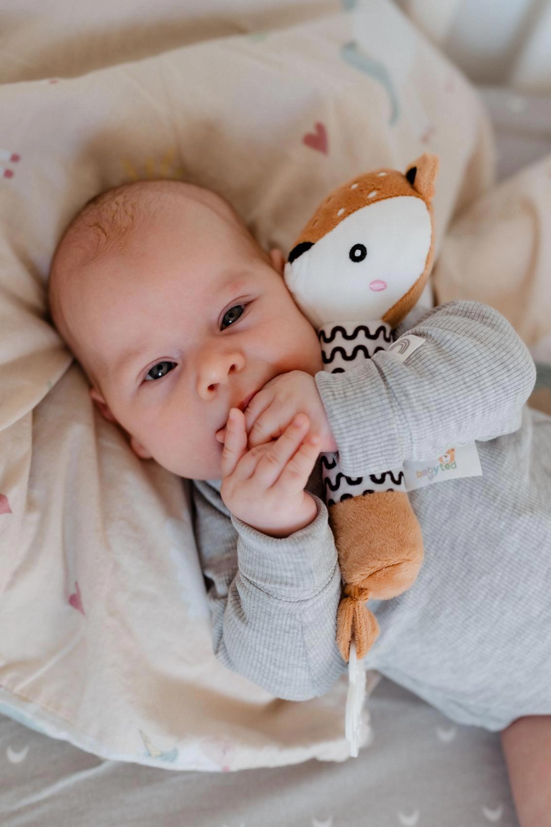 Premendo il cerbiatto si ottiene un suono lieve e piacevole, che cattura l’attenzione e sostiene lo sviluppo dell’udito fin dai primi giorni.