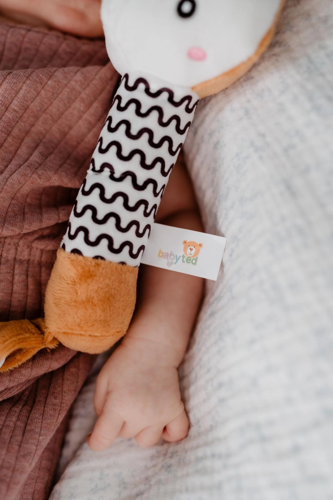 Il corpo lungo e morbido è facile da afferrare con le manine, mentre il motivo bianco e nero sostiene la percezione visiva dei bebè.
