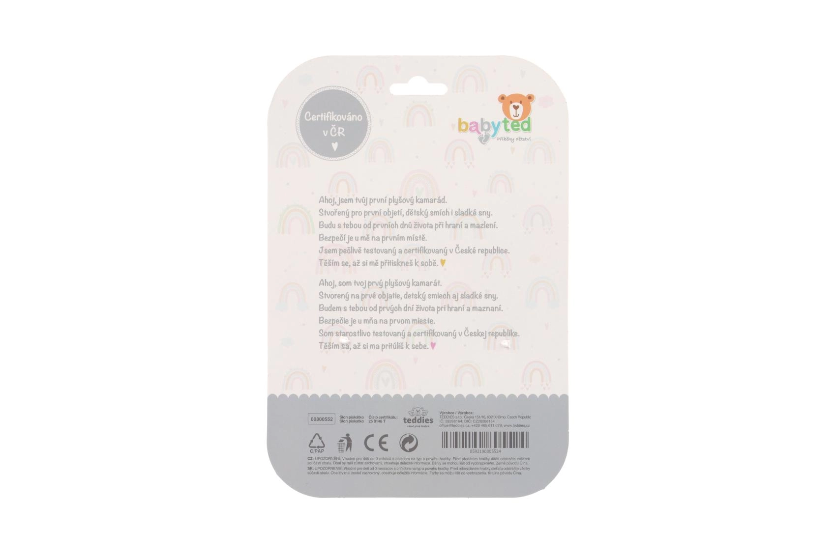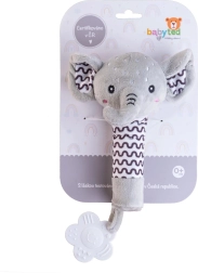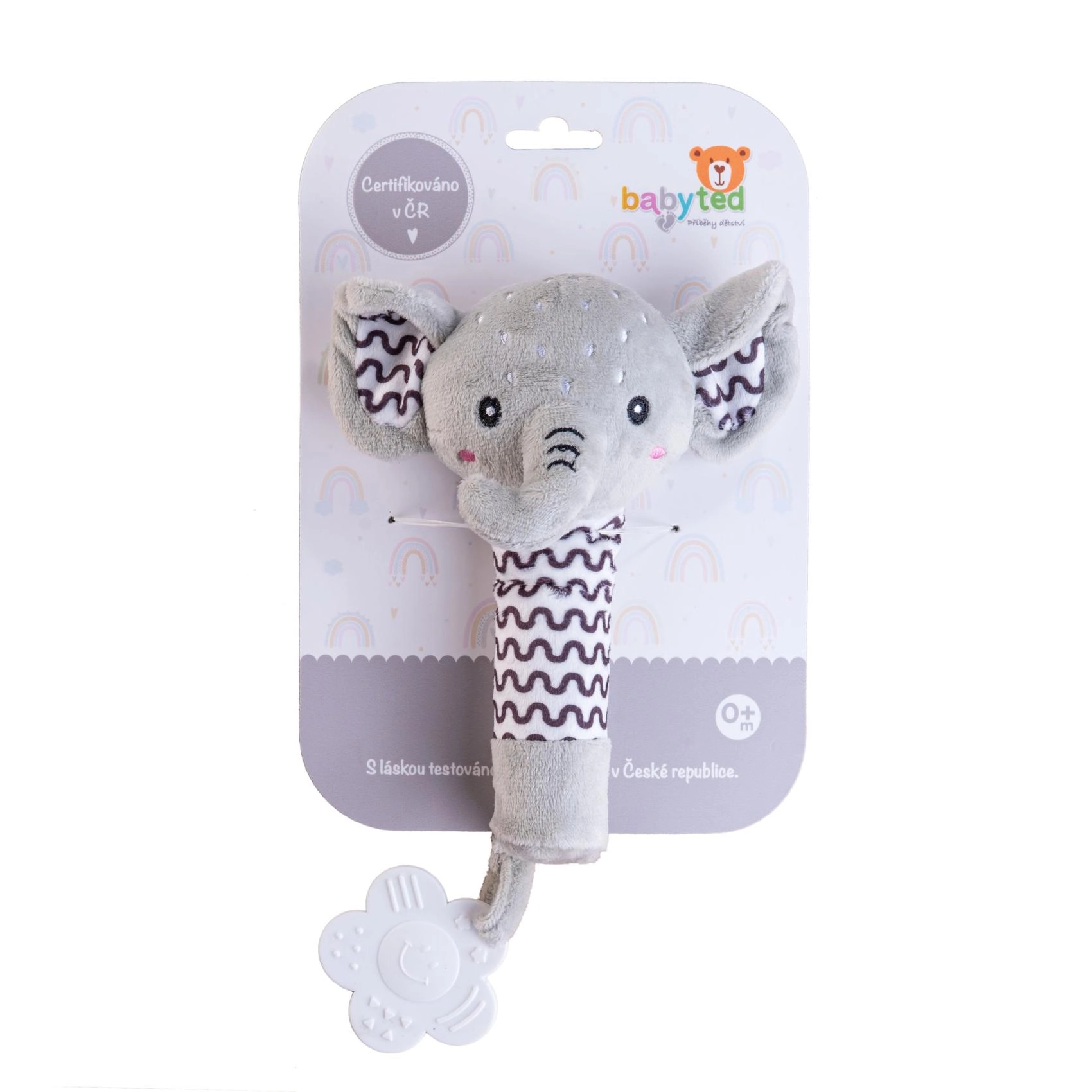 Il dolce sonaglio in peluche con massaggiagengive a forma di elefante del marchio BABYTED farà felici i bebè fin dalla nascita. Ha un corpo morbido per una presa facile, emette un sottile squittio alla pressione e all’estremità dell’impugnatura c’è un morbido massaggiagengive a forma di fiore che dona sollievo alle gengive sensibili. I motivi a contrasto favoriscono la percezione visiva e il morbido peluche sicuro è delicato per i più piccoli. Certificato nella Repubblica Ceca secondo rigorose norme di sicurezza.