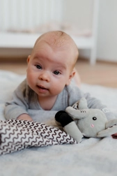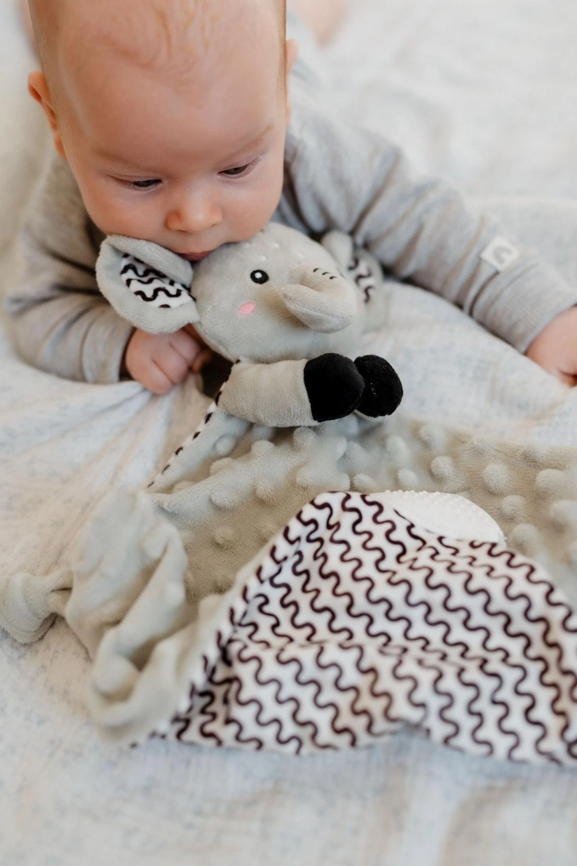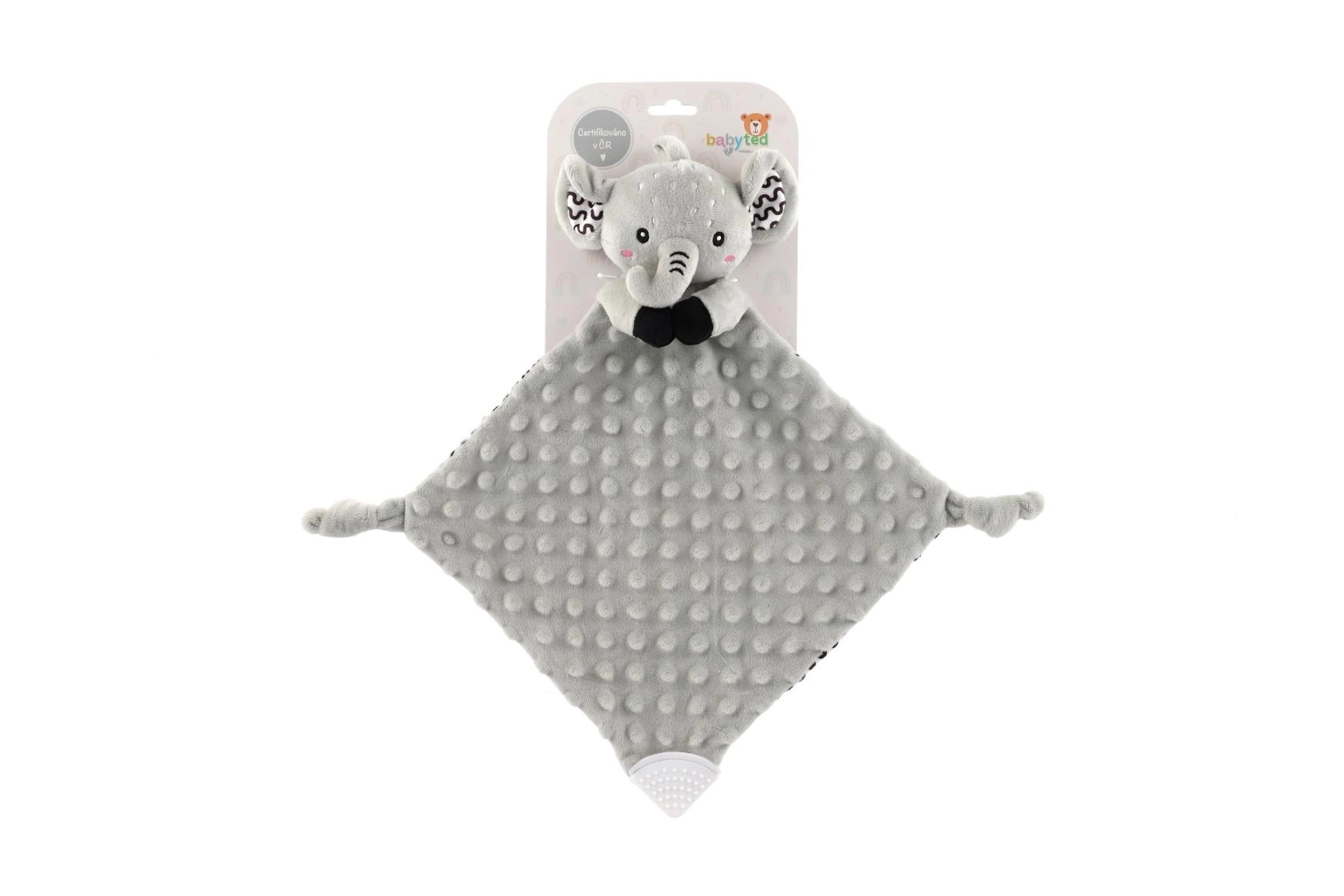 Regala al tuo bebè un compagno rassicurante per ogni giorno. Il doudou elefante BABYTED è realizzato in minky straordinariamente piacevole al tatto con una marcata struttura 3D, che stimola il tatto e invita alle coccole. Grazie alla struttura leggera e ai nodini sugli angoli può essere afferrato facilmente anche dalle manine più piccole.