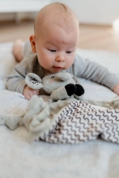 Materiale ultra morbido con puntini in rilievo che offre al bebè comfort, sicurezza e una delicata stimolazione sensoriale durante le coccole e l’addormentamento.