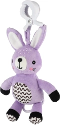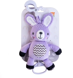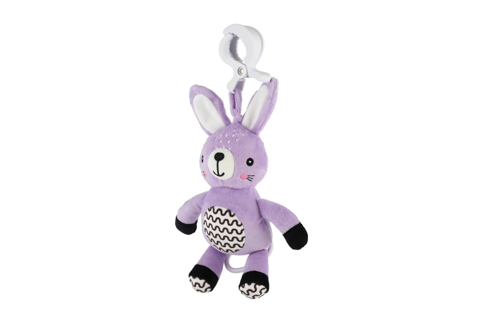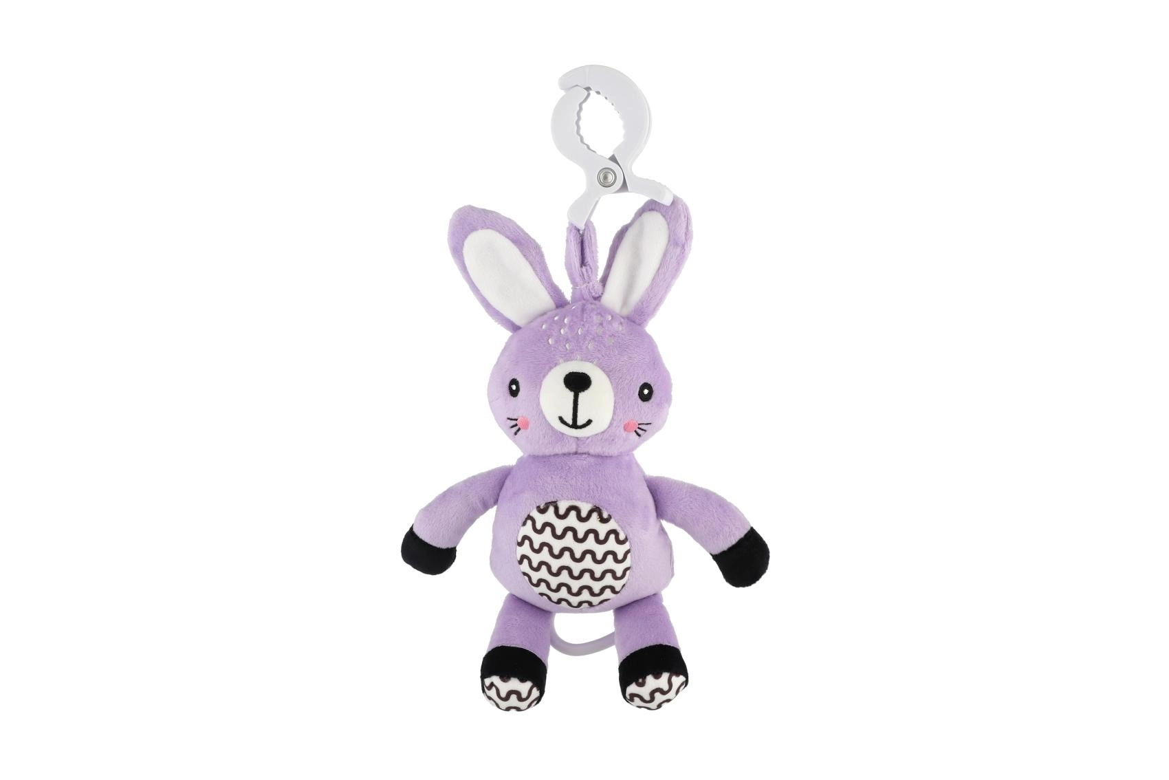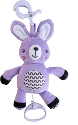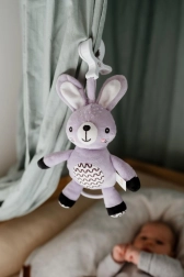Questo coniglietto di peluche da appendere offre al bebè conforto, delicata stimolazione e divertimento sicuro a casa e in viaggio. Il meccanismo a carica, dopo la trazione, riproduce una melodia gradevole che aiuta a creare un ambiente tranquillo per il riposo. Grazie alla clip universale, il giocattolo si fissa facilmente a passeggino, lettino, seggiolino auto o palestrina.