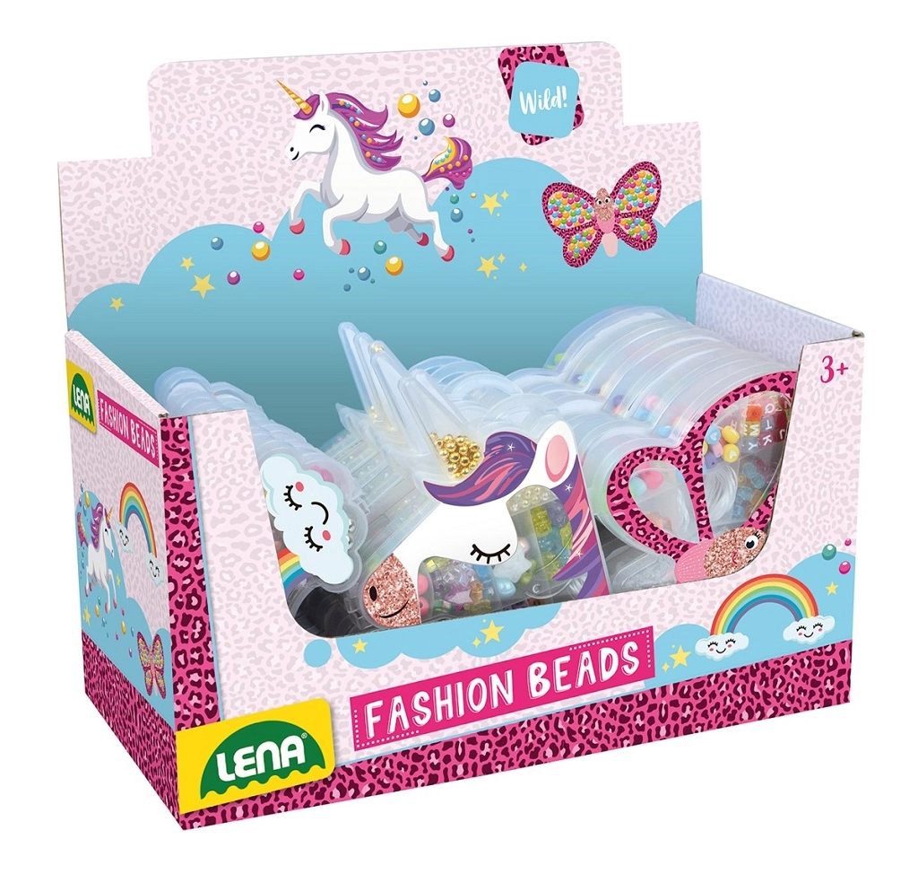 Questo incantevole set di perline infilabili del marchio Lena è un'ottima scelta per le piccole creative che amano i colori e il fai-da-te. Ogni confezione offre una ricca selezione di perline, incluse lettere, forme decorative e cordini, così i bambini possono creare braccialetti, collane e piccoli accessori originali esattamente secondo la loro fantasia. Disponibili 3 magici temi: UNICORN, ARCOBALENO e FARFALLA.
