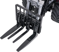 Fari anteriori e illuminazione della cabina attivabili dal radiocomando. La modalità demo mostra automaticamente tutti i movimenti e le funzioni del trattore.