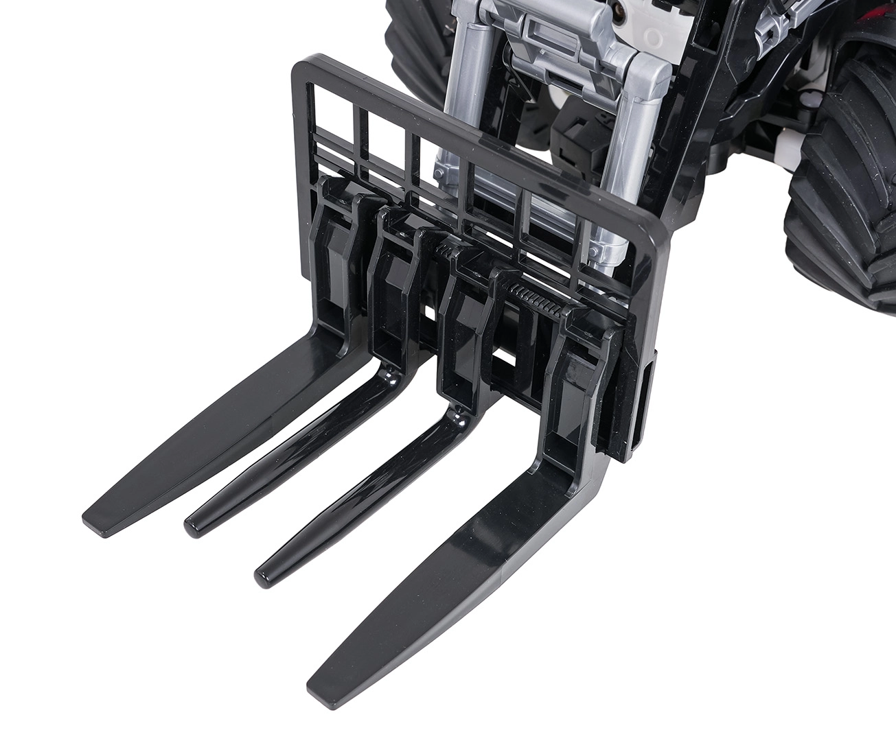 Il caricatore frontale può essere sollevato, abbassato e inclinato manualmente, consentendo ai bambini di raccogliere e trasportare piccoli oggetti. Le grandi ruote in gomma assicurano una buona trazione su varie superfici. Comoda anche la funzione di spegnimento automatico dopo un periodo di inattività. Il trattore è alimentato dalla batteria inclusa da 3,7 V 500 mAh; la ricarica avviene tramite cavo USB; il radiocomando richiede 2× AAA (non incluse).