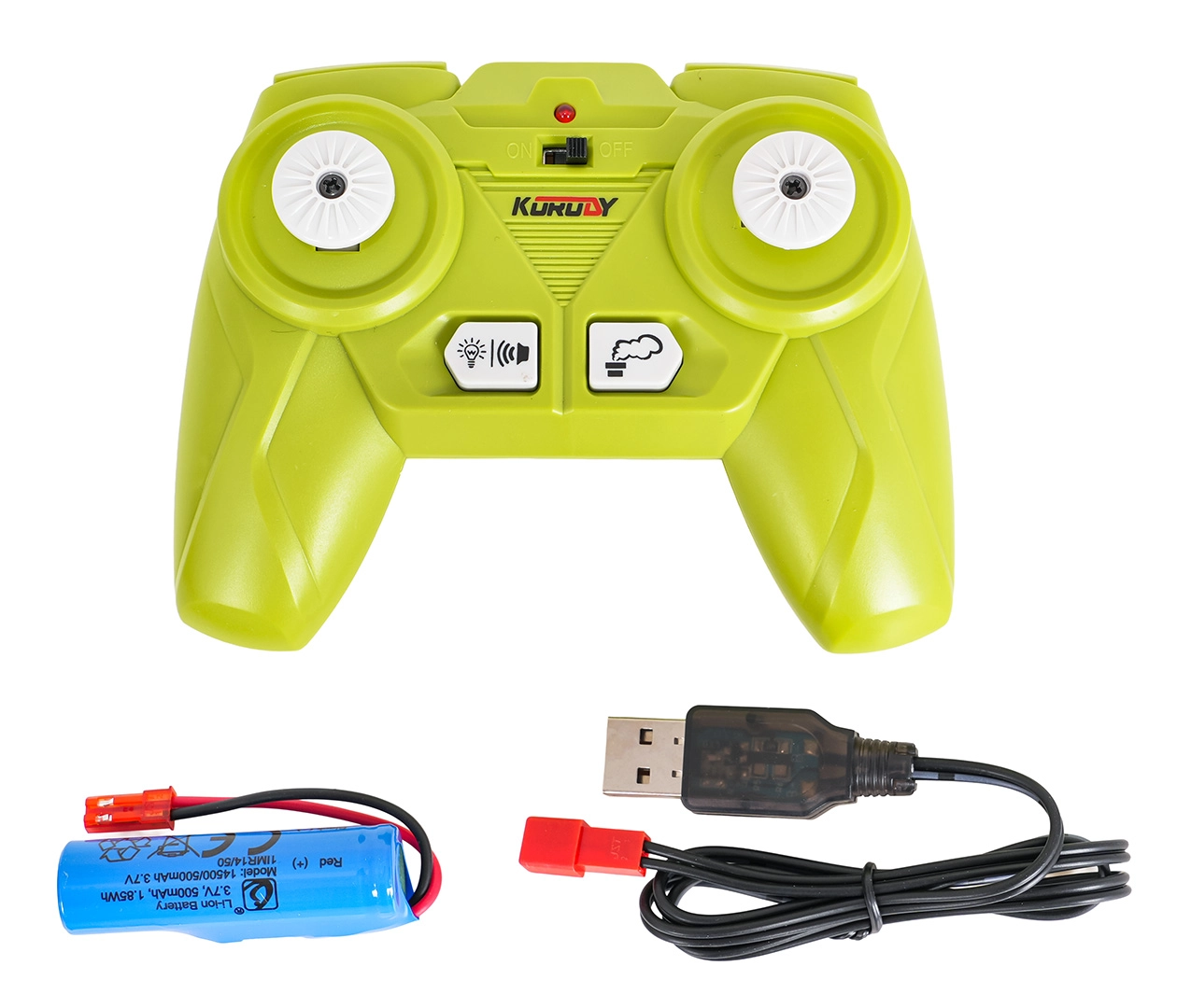 - Mietitrebbia con testata, radiocomando 2,4 GHz, batteria 3,7 V, cavo di ricarica USB, pipetta per l’acqua