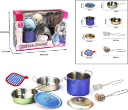 Realistico set da cucina in metallo per piccoli chef con 8 pezzi, offre pentolame in metallo resistente, bordi arrotondati e sicuri e un design accattivante. Perfetto per giocare alla cucina, al ristorante o al negozio, sviluppa fantasia, creatività e motricità fine ed è un regalo ideale grazie alla confezione attraente.